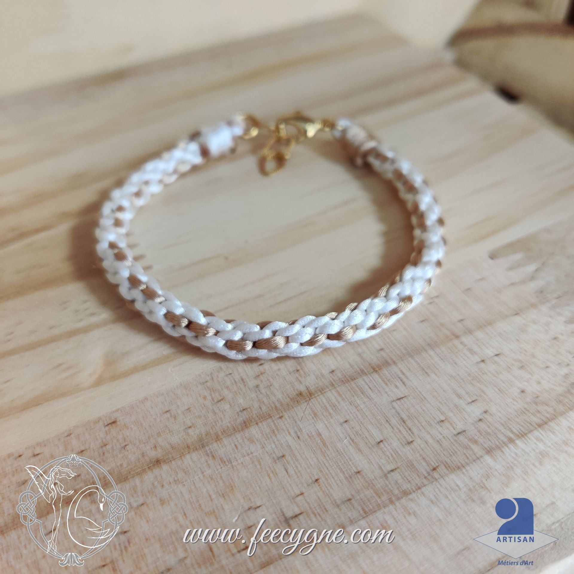 Toujours soucieuse d'utiliser des matériaux de qualité, j'ai décidé ici de réaliser ces bracelets avec des cordons de satin fabriqués en Espagne. Les cordons mesurent 1.5mm de diamètre et sont certifiés OEKO-TEX au standard 100. Ceci donne de jolis bracelets très solides et résistants. Ils sont adaptés à un poignet de 16 cm, et disposent d'une chainette de réglage d'environ 2 cm.